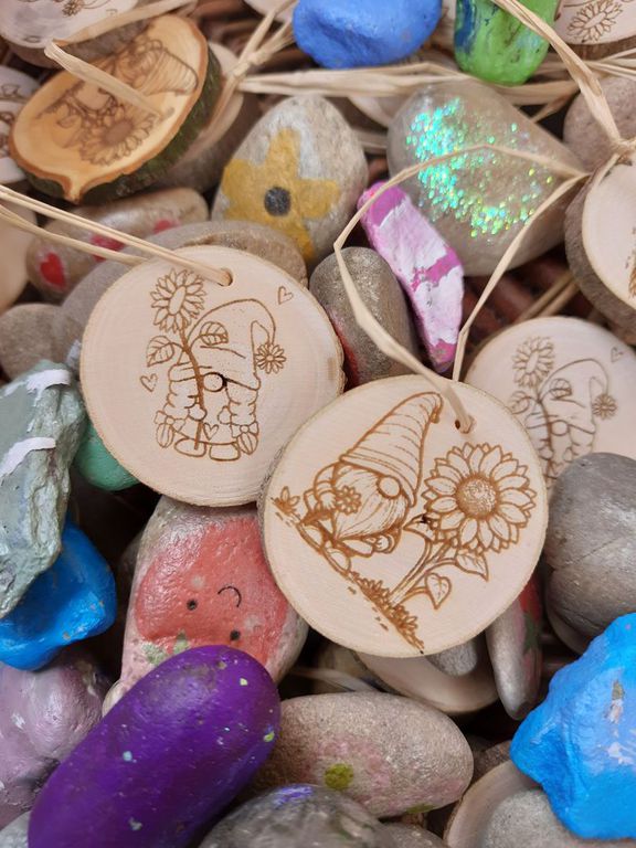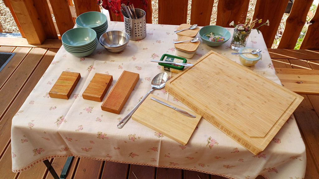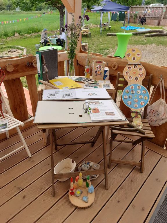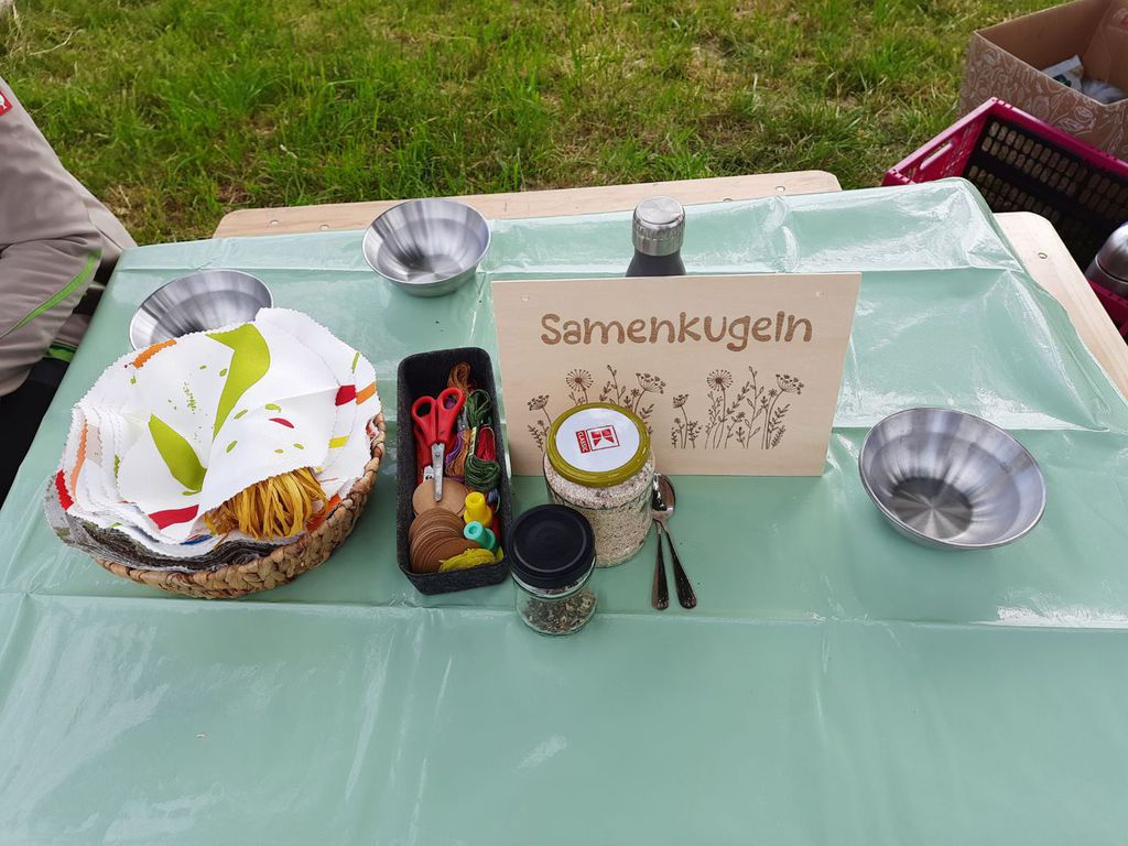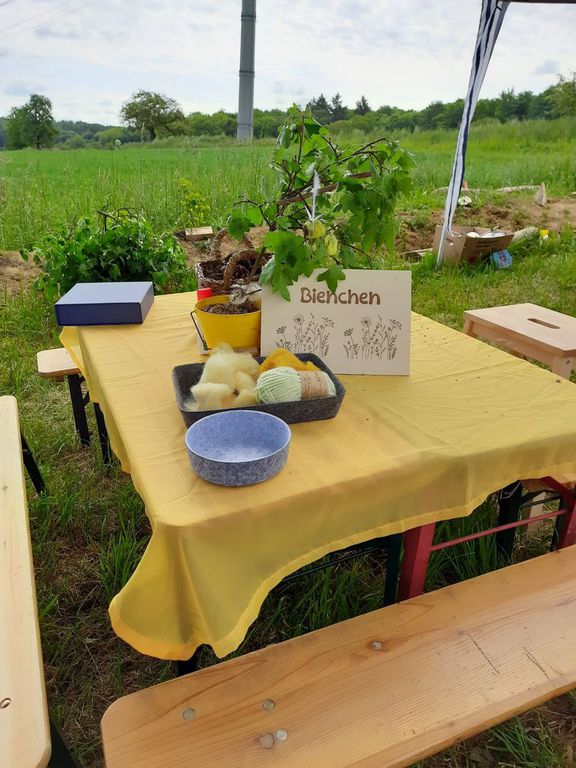 Die großen und kleinen Gäste konnten an verschiedenen Bastelstationen kreativ werden – aus Naturmaterialien, die die Kinder in den vergangenen Monaten im Wald gesammelt hatten, entstanden Samenbomben, Holzperlenketten und kleine Bienchen-Anhänger.